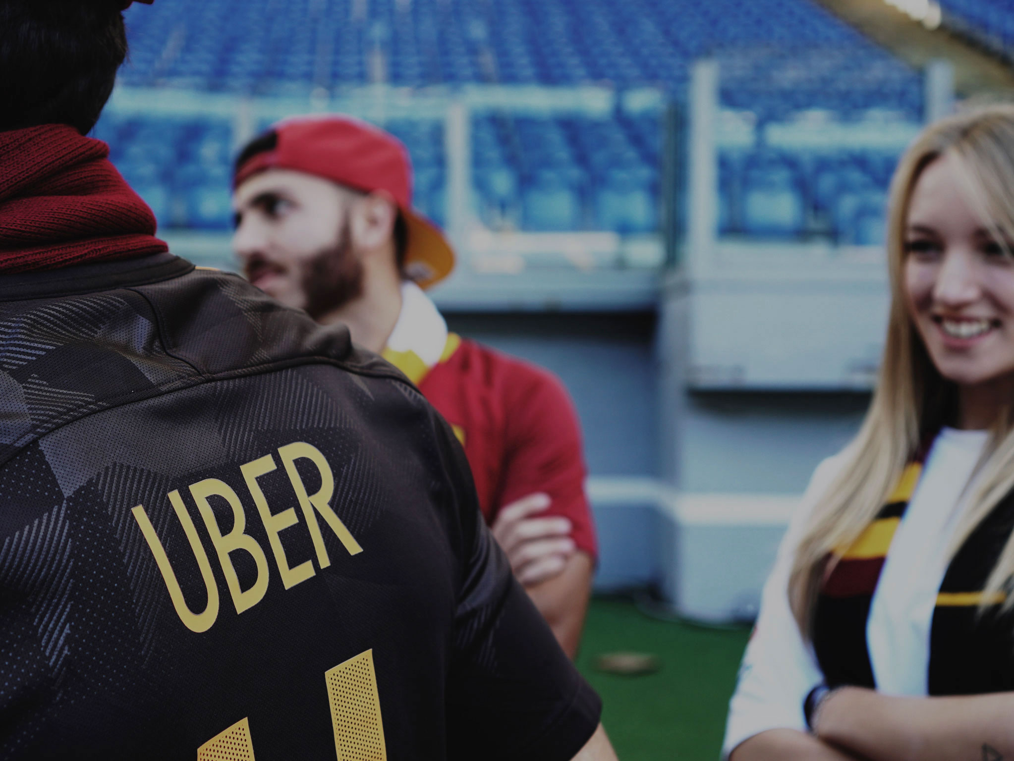 Per la partnership Uber & AS Roma, abbiamo creato una campagna che, giocando visivamente sulla continuità e mettendo in campo il tema della passione, mette in comunicazione due realtà molto diverse tra loro. Il risultato? Una sinergia tra il calcio e il servizio di trasporto che mette al centro le persone e parla direttamente ai tifosi e agli utenti di Uber.