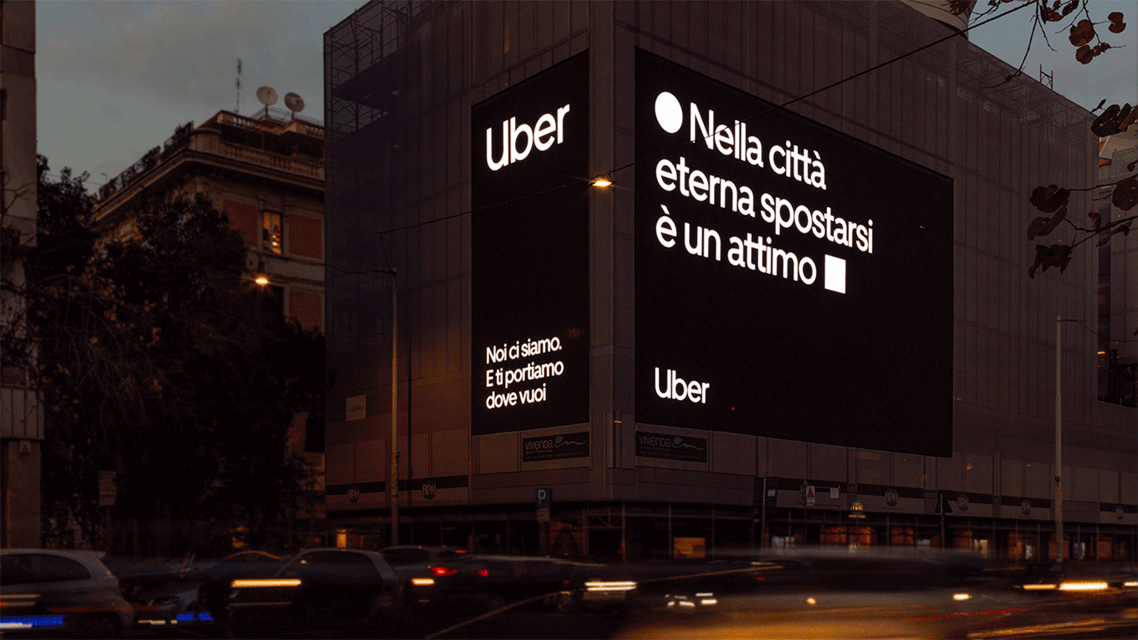 Da anni collaboriamo con Uber, realizzando campagne innovative per promuovere i servizi Uber Black e Uber Taxi nelle principali metropoli italiane. La nostra strategia integra OOH, Motion Design, Performance Marketing, Concept & Strategy, 3D e Anamorphic Design per comunicare con semplicità e impatto la comodità e la sicurezza del viaggiare con Uber.